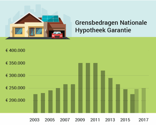 Tot 2009 was de maximale hypotheek met NHG verbonden aan de gemiddelde woningprijs. Toen de woningmarkt vastliep, werd besloten om de grens tijdelijk te verhogen. Banken kregen zo meer zekerheid dat het uitgeleende geld terugbetaald werd en kopers profiteerden van een lagere hypotheekrente. De NHG-grens werd vastgesteld op 350.000 euro.